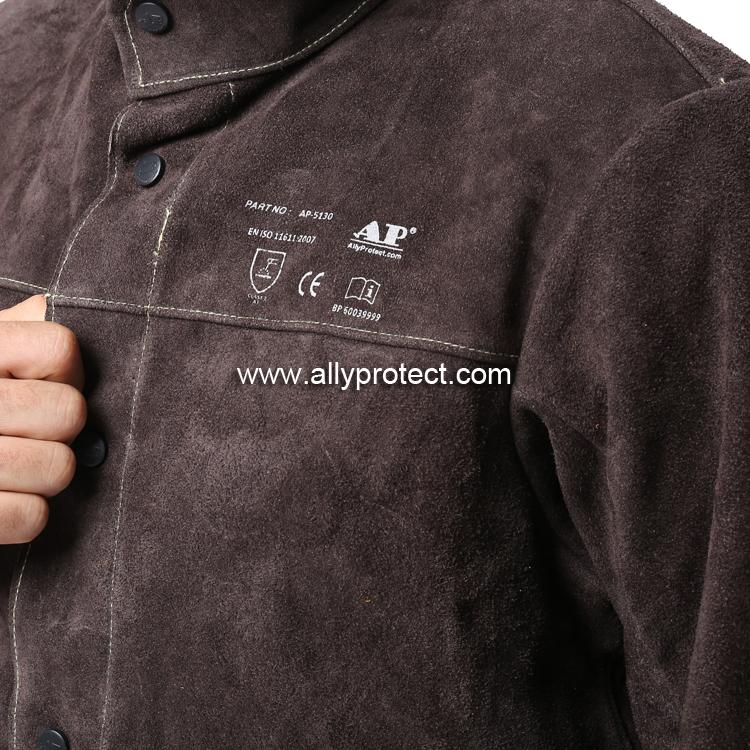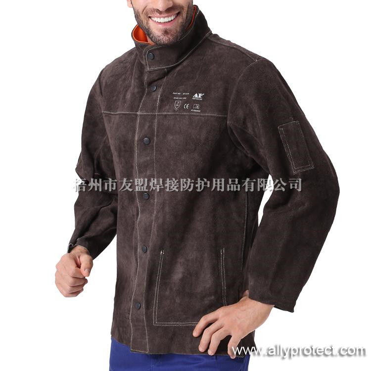 - 產品描述: [ AP ]炭啡色牛二層芯皮全皮上身焊服,能夠在焊接飛濺嚴重的環(huán)境中,給使用者的身體提供安全有效的保護。