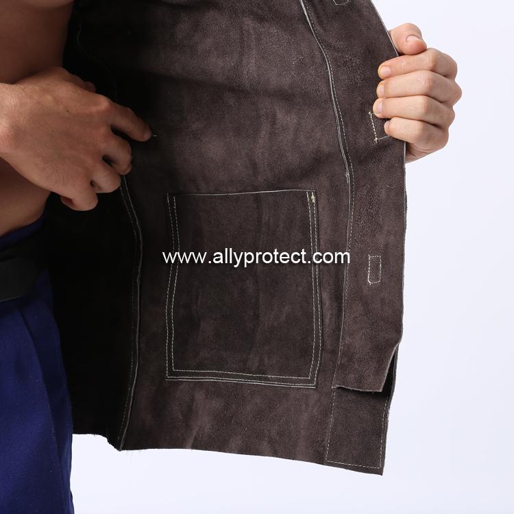 前胸防護條設計,防止燒焊飛濺物濺入衣內,雙層皮設計防止撕脫。
